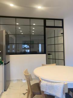Questo appartamento comprende 2 camere da letto, 1 bagno, lenzuola, asciugamani, una TV a schermo piatto con canali via cavo, una zona pranzo, una cucina con utensili e un balcone con vista sulla città.