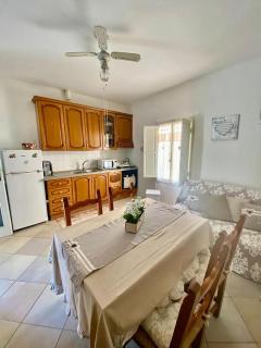 Questa casa vacanze con 1 camera da letto e aria condizionata presenta 1 bagno con bidet, doccia e asciugacapelli. La cucina comprende frigorifero, forno e microonde, più macchina da caffè e bollitore elettrico.