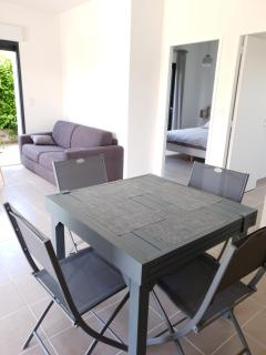 Questa casa vacanze con aria condizionata comprende 1 camera da letto, un soggiorno, una cucina con utensili, frigorifero e macchina da caffè, e 1 bagno con doccia e set di cortesia. Presso questa casa vacanze troverete asciugamani e lenzuola tra i servizi offerti.