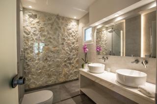 Questa villa presenta 1 camera da letto, 4 bagni, lenzuola, asciugamani, una TV a schermo piatto con canali satellitari, una zona pranzo, una cucina con utensili e una terrazza con vista sul mare.