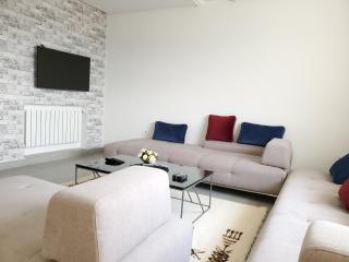 Questo appartamento con aria condizionata comprende 2 camere da letto, un soggiorno, una cucina con utensili, frigorifero e macchina da caffè, e 1 bagno con doccia e vasca idromassaggio. Tra i servizi offerti troverete una TV a schermo piatto con canali satellitari.