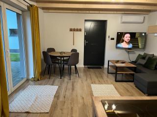 Questo chalet con aria condizionata prevede 2 camere da letto, TV a schermo piatto con canali satellitari e cucina con frigorifero e lavastoviglie. Presso questo chalet troverete asciugamani e lenzuola a disposizione.